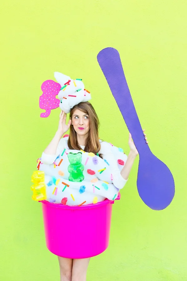 Since we love frozen treats we can not leave this post without one of our favourite costumes by Kelly from Studio DIY. This DIY for frozen yogurt is right down our alley. All you cake lovers out there we are sure that with just a few modifications you can turn this fro-yo design into a cup cake as well!